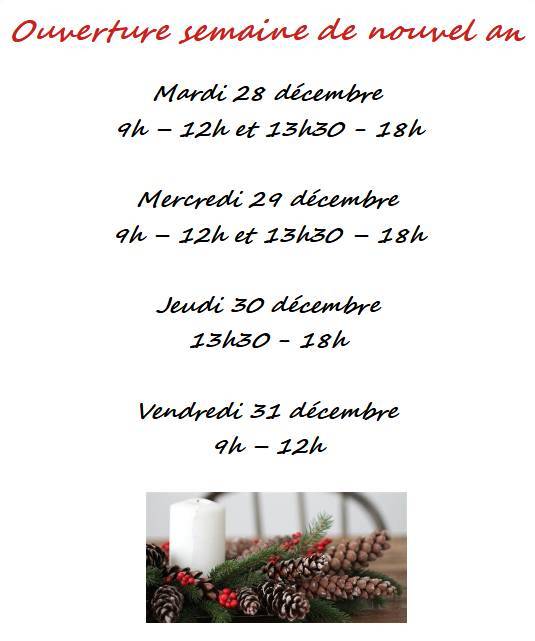 Horaires d’ouverture pour la semaine de nouvel an