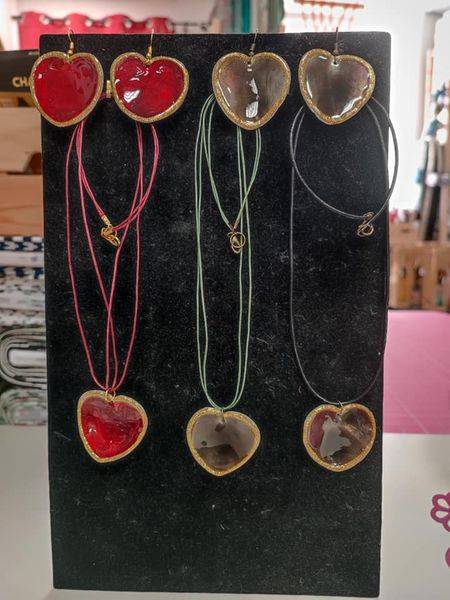 Chose faite avec des boules et coeurs en nacre ?