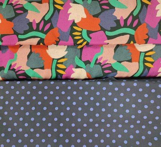 Une nouvelle marque de tissu fait son entrée : Cousette ? Voici deux belles viscoses hyper douces et souples : Une fond gris à pois iris Et la viscose Color Therapy très colorée et peps en édition limitée Idéal pour réaliser une robe, une jupe ou une belle blouse ? Disponible en boutique et sur