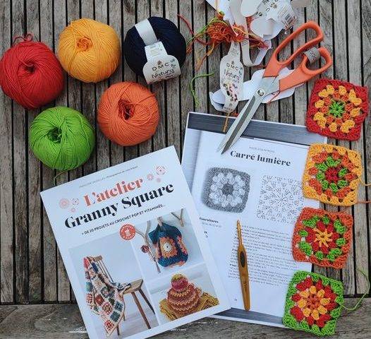 J’ai reçu dans la semaine des nouveaux livres sur les Granny, je me suis garder le livre L’atelier Granny Square… Comme aujourd’hui il faisait bien chaud et que c’était un temps à rester tranquille sur le transat, j’ai commencé et le plus dur fût de choisir les couleurs ? Faut dire que les copines m’avaient aussi donné envie d’en faire ?
