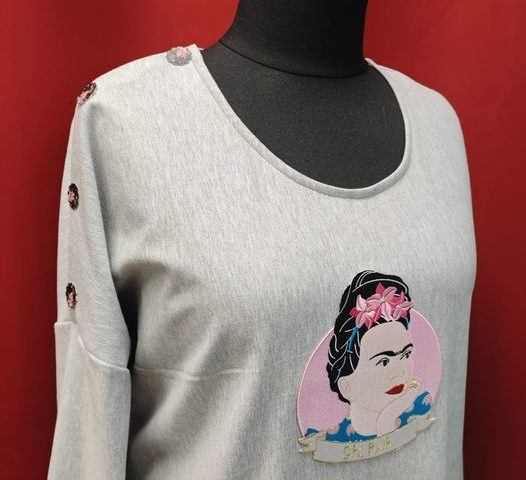 ? Et encore un sweat ? Je voulais tester le nouveau patron Horizon d’@atelierscammit et comme j’ai craqué sur les nouveaux bigs écussons de Malicieuse, en ben voilà… J’ai donc opté pour la version boutons sur une épaule, bord côte aux poignets et grande encolure avec une belle Frida Girl Power Je sais on est en été, il fait beau et chaud, mais c’est pas grave, un sweat peut aussi se porter le soir quand c’est un peu frais ? ? En plus le sweat gris que j’ai utilisé est tout doudou à l’intérieur ? Patron, écusson et tissu dispo sur