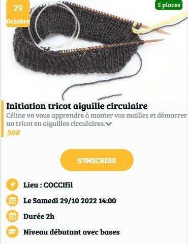 – samedi 29 octobre à 14h initiation aiguille circulaire ?