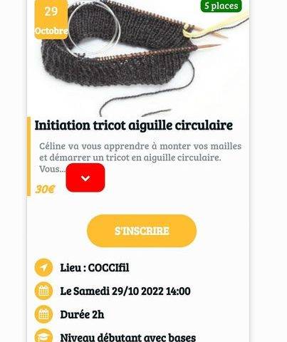 Vous m’aviez demandé un atelier pour apprendre à tricoter avec des aiguilles circulaires. C’est possible ce samedi de 14h à 16h ?