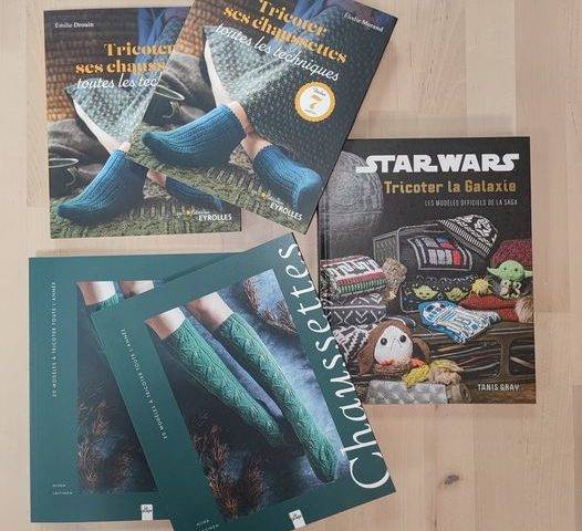 Retour du livre Tricoter ses chaussettes que vous m’avez dévalisé à Noël avec un nouveau qui s’appelle simplement Chaussettes et qui est magnifique ? Plus un livre de tricot sur le thème de Star Wars