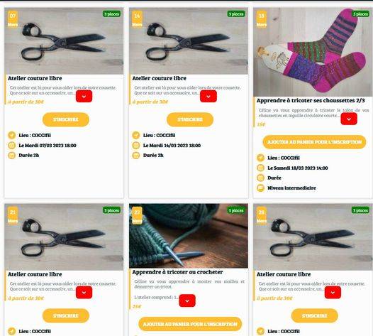 Vous avez la possibilité de vous inscrire soit en boutique soit directement sur www.coccifil.fr dans l’onglet « ateliers »