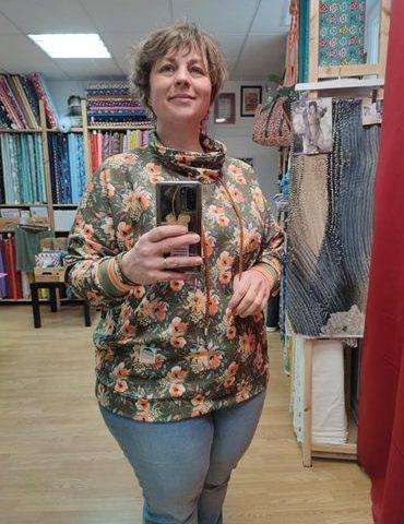 ? Du coup je me suis re cousu un sweat Horizon de Atelier Scämmit mais en faisant un col à ma sauce dans ce french terry flowers kaki que je regardais presque tous les jours ?
