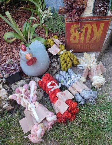Hier est arrivé un carton rempli d’écheveaux @unelouvedanslesbois pour Sandrine Mercerie Raugraff et moi.