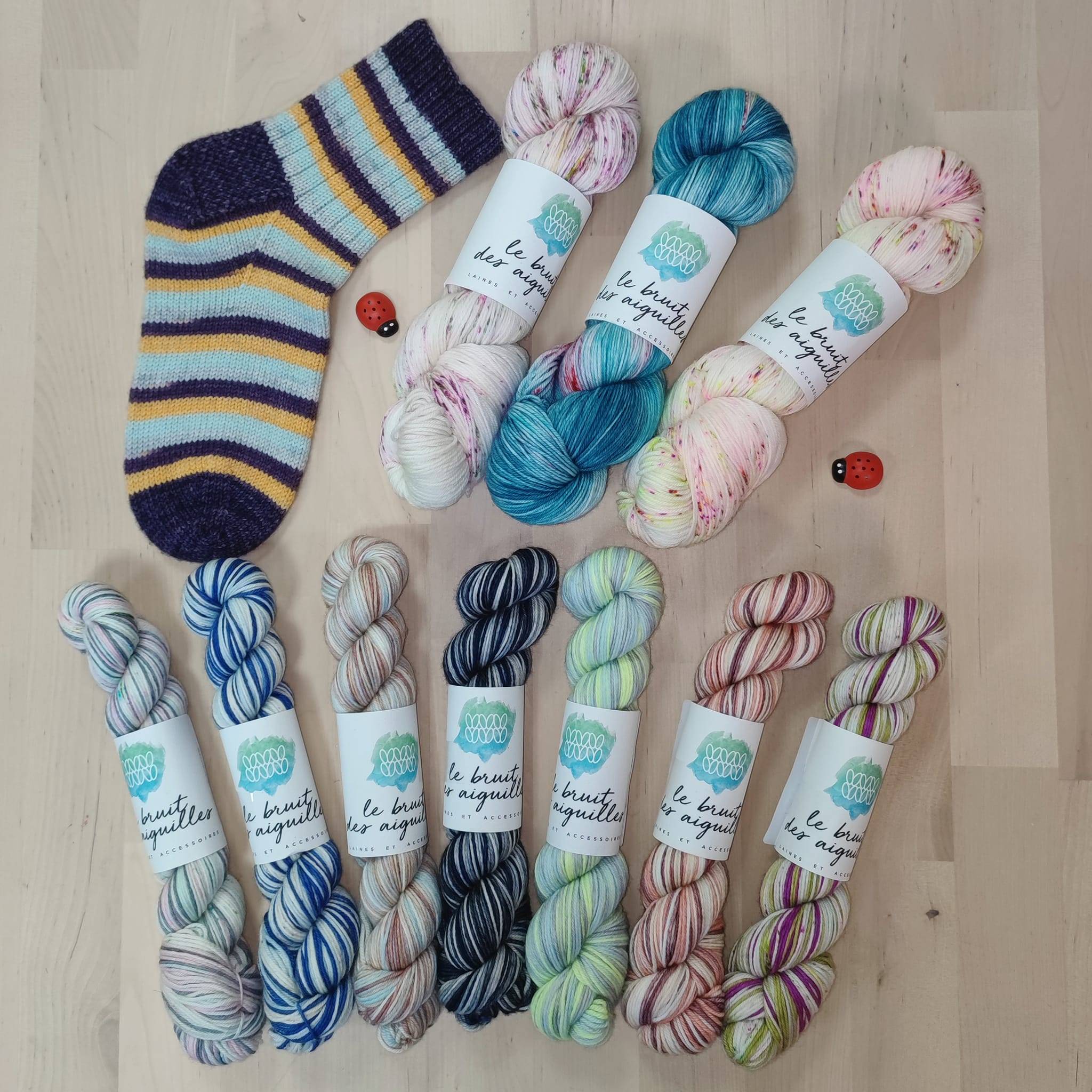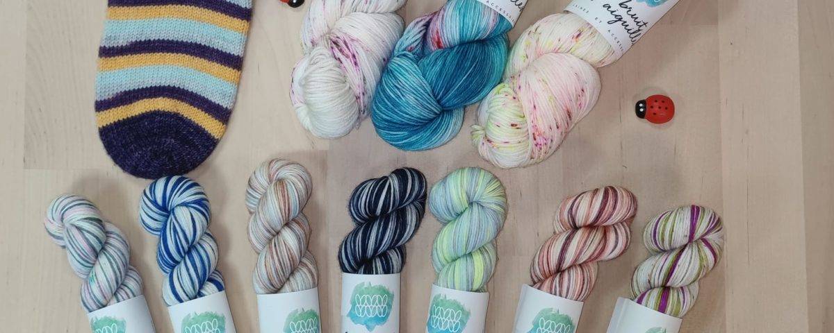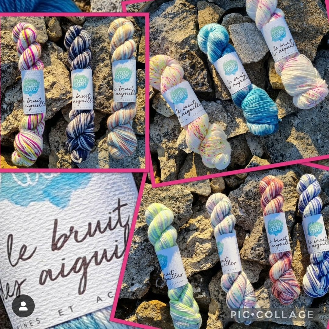 ? Pour commencer je vous présente @lebruitdesaiguilles : Ana est teinturière de laine et spécialisée dans les laines à chaussettes autorayantes, mais pas que ! ? Voici la sélection que l’on vous a faite avec Sandrine de la Mercerie Raugraff ? Et oui, une laine à chaussettes en plus à vous proposer et à tester sur vos aiguilles ?
