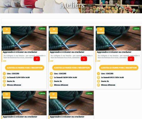 Inscription soit en boutique soit sur www.coccifil.fr onglet « atelier »