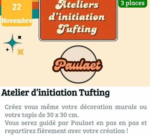 🧶 Nouvel atelier : Initiation tuffting animé par @paulaet_tufting … En voir plus
