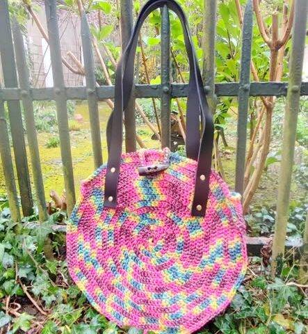 🌸 Envie d’un joli sac au crochet pour demarer le printemps… @dmc_france a agrandi sa gamme Eco Vita 4 avec des fils multico 1 livret avec 6 projets de sac au crochet + 9 couleurs changeantes = Une multitude de possibilté Nous avons réalisé le sac rond mais plus grand que dans le catalogue (ici presque 2 bobines) J’y ai ajouté des ances en cuir qui se vissent ( elles existent en noir ou en carmel) Et voilà de la couleurs à porter 😉 . #coton #crochet #coccifil #crochetaddict #sac