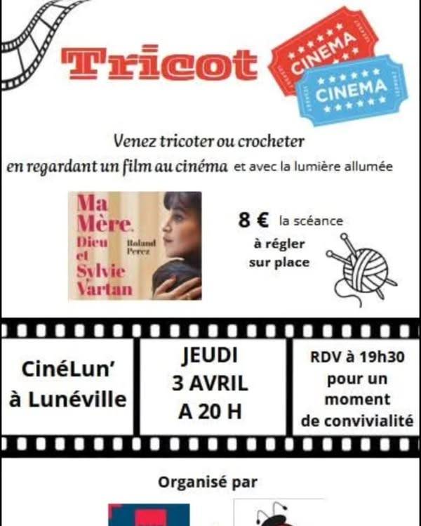 ? INFOS pour demain soir : Tricot Cinéma à Cinélun rue de la République à Lunéville.… En voir plus