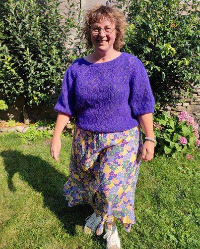 ? Voilà ma cousette des vacances : une jupe en viscose Flower Power de chez Singulière par Cousette pour aller avec mon pull Ilona en Phil