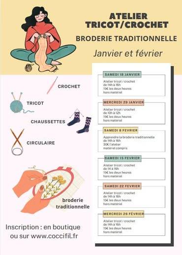 Je vous ai fait un petit récapitulatif des ateliers jusqu’à fin février ? . #atelier #ateliers #tricotlove #tricoterseschaussettes #tricotaddict #triciot #tricotcirculaire #crochetlover #crochetaddict #crochet #broderiemoderne #broderie