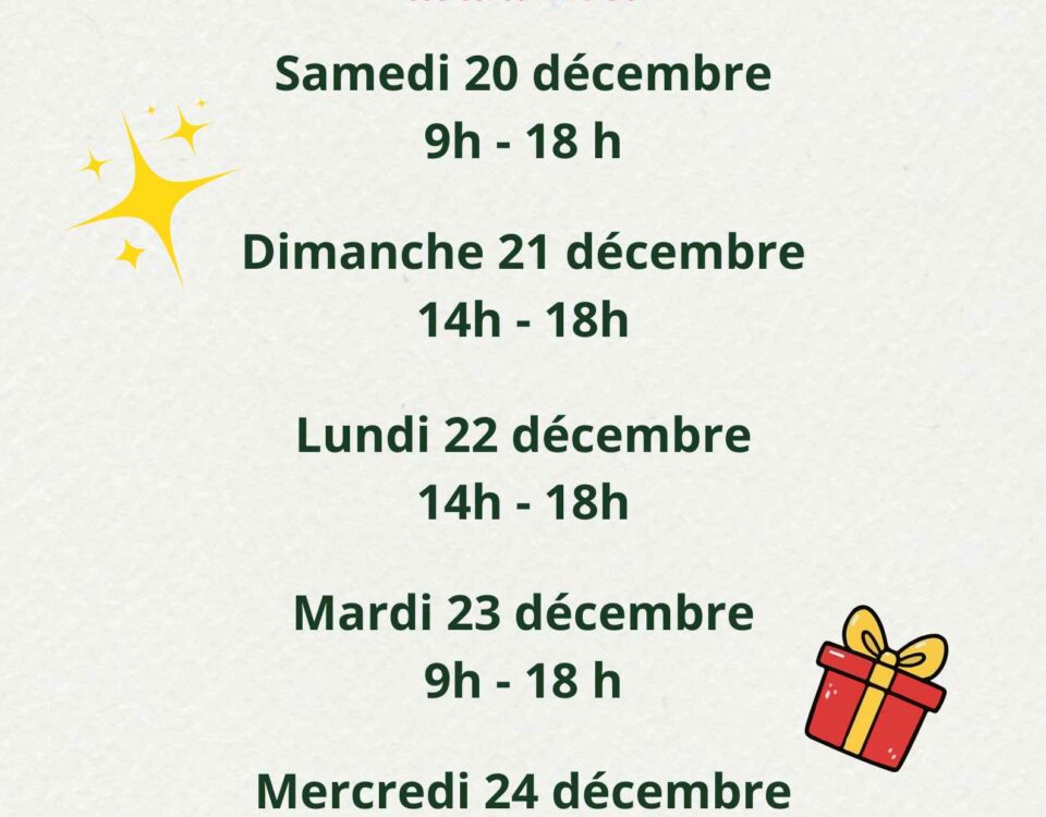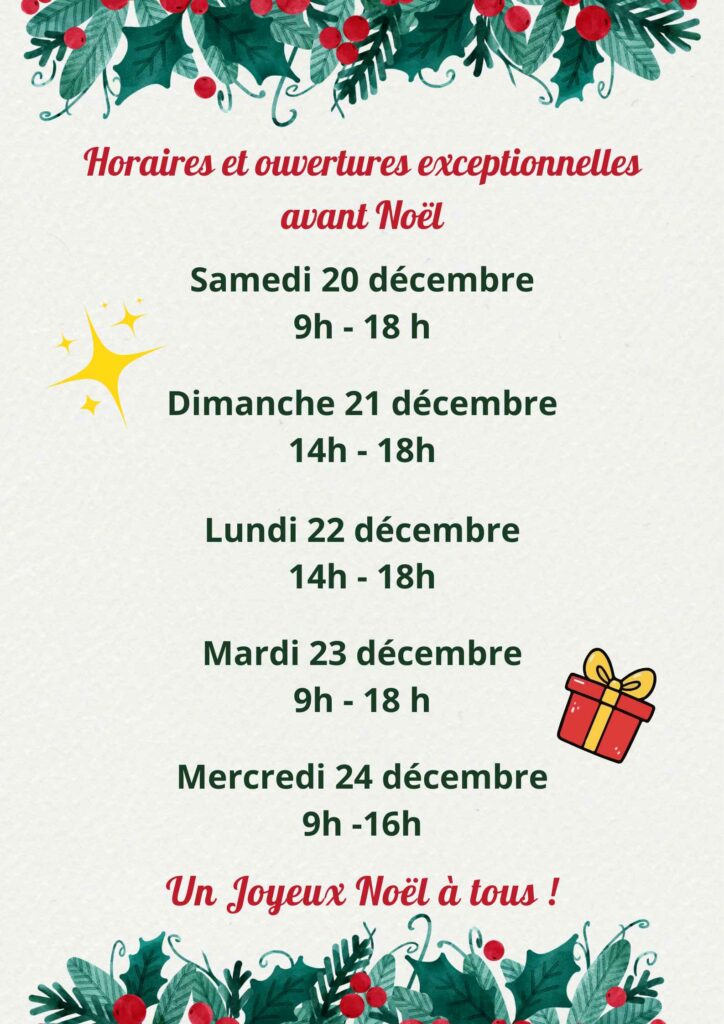 Horaires ouverture pour Noel