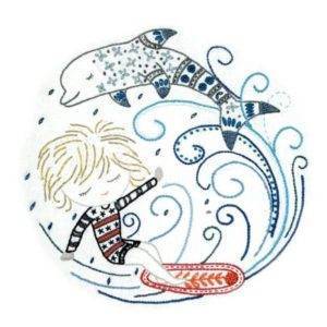 Un chat dans l’aiguille kit à broder Sacha prend la vague