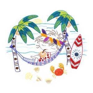 Un chat dans l’aiguille kit à broder Sacha en vacances à Hawaï