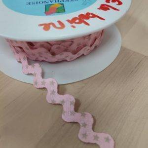 Galon serpentin rose à étoiles lin