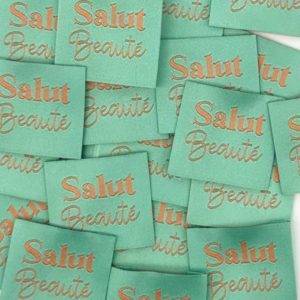 Etiquette tissée Salut beauté – menthe