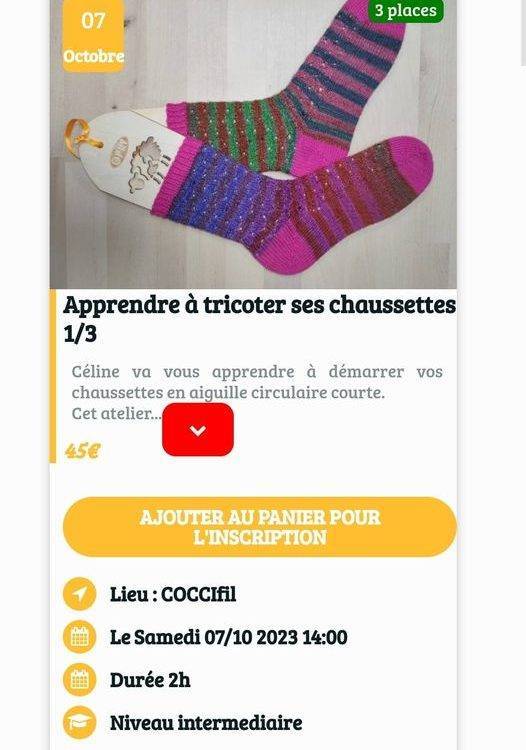 [ad_1] ? Une nouvelle session d’ateliers chaussettes est ouverte. ? Premier atelier samedi de 14h à 16h Il comprend : 2 pelotes de Jawoll, une aiguille