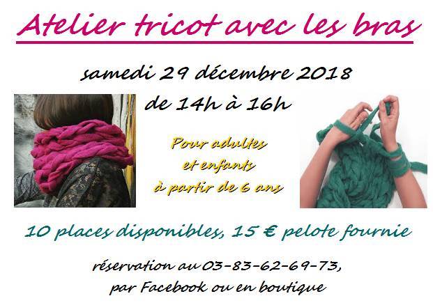 Atelier tricot avec les bras samedi 29 décembre de 14h à 16h