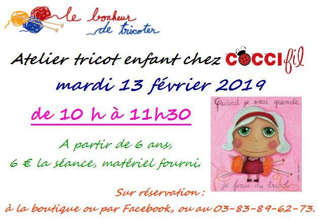 Atelier tricot enfants mercredi 13 février de 10h à 11h30