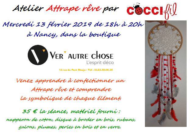Atelier attrape rêves chez Ver’autre choses 13 février de 18h à 20h