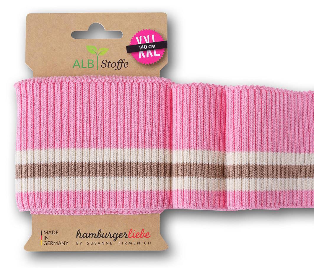 ALB Stoffe Bord côte XXL – grosses côtes rose à rayure écru et beige