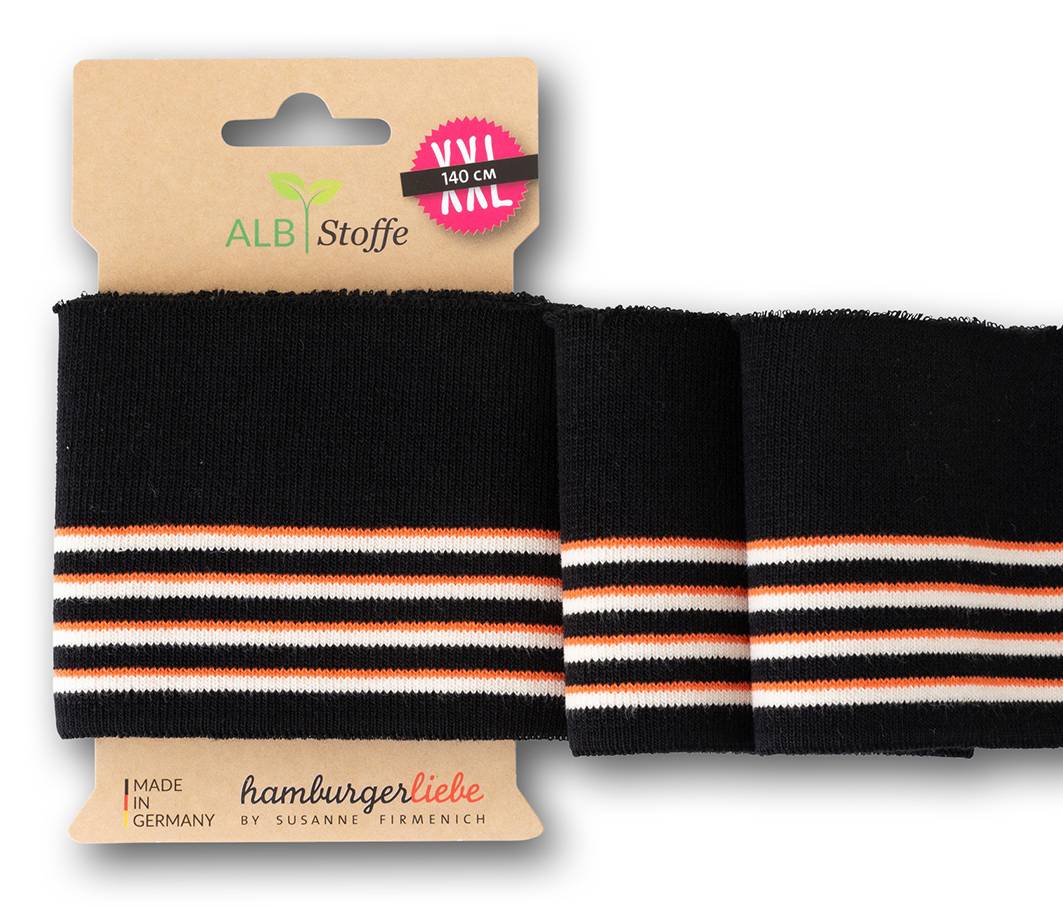 ALB Stoffe Bord côte XXL – noir rayé écru et orange