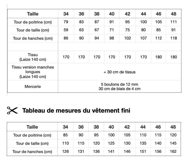 Patron de la taille 34 à 48