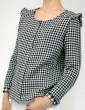 Blouse légèrement cintrée, boutonnage devant et absence de pince poitrine pour un style résolument actuel. L’empiècement en V au dos, bordé d’un froufrou ou non, donne toute l’allure à cette blouse intemporelle. Empiècement doublé sans aucune couture apparente + coutures anglaises. Cette blouse peut aussi se décliner en robe.