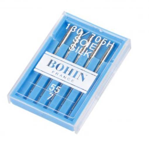 Les aiguilles sont plus fines et pointues que les aiguilles traditionnelles. A utiliser avec les micro-fibres et les étoffes légères tissées serrées.