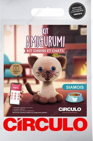 Ce kit contient tout le matériel pour réaliser au crochet un chat siamois