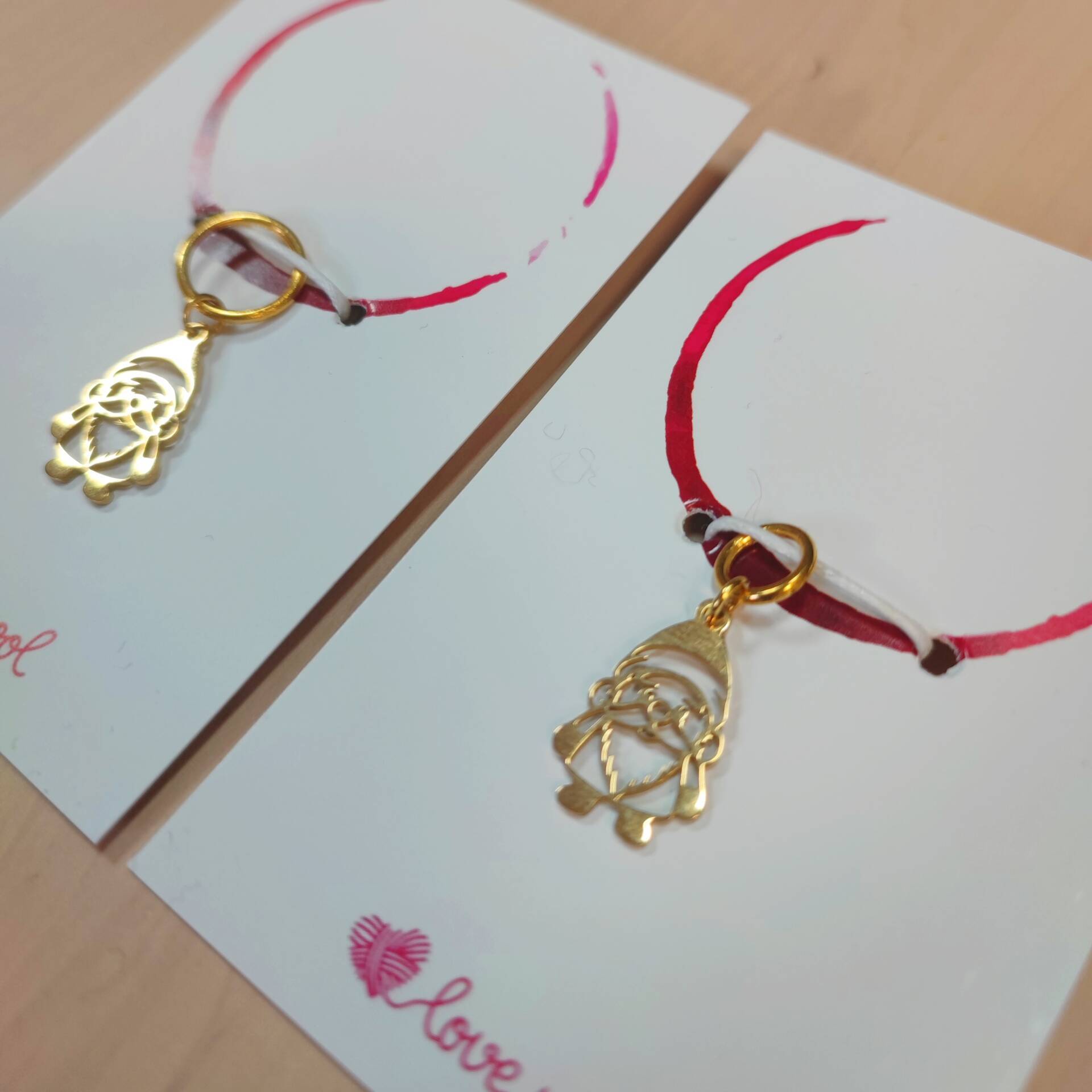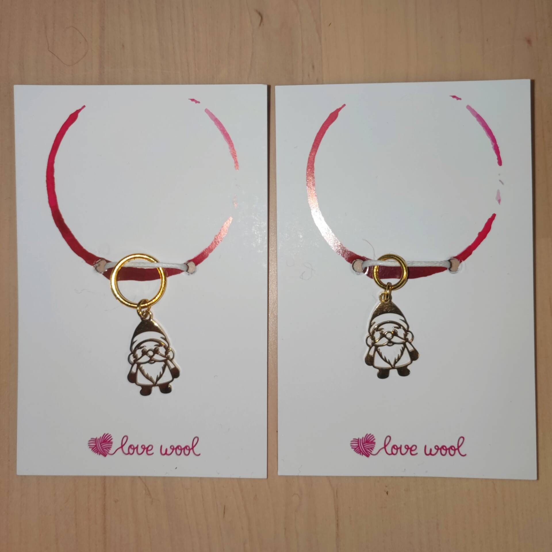 Anneau marqueur de tricot, Père Noël en métal ciselé couleur or avec anneau fermé.