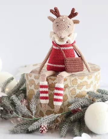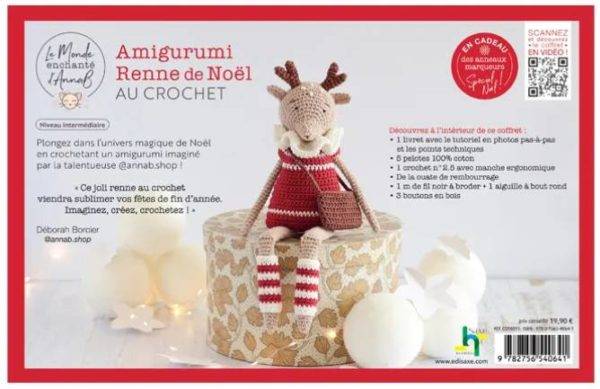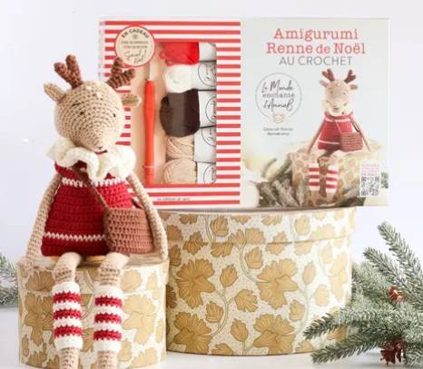 Dans ce coffret Noël, la créatrice vous accompagne de A à Z pour que vous réussissiez facilement à crocheter cet adorable renne.