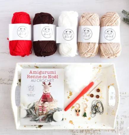 Il s’agit d’un coffret crochet comprenant tout ce qu’il faut pour crocheter un amigurumi de saison trop mignon : un joli renne de Noël imaginé par la talentueuse @annab.shop !