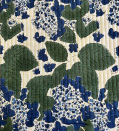 VERA est un tissu matelassé double face imprimé selon la technique traditionnelle du « Block Print ». Réalisés à l’aide de tampons de bois sculptés, les motifs de ces matelassés utilisent une technique ancestrale d’impression à l’aide de blocs de bois. Cette technique implique des petites imperfections sur l’impression mais également un retour à une technique artisanale et la valorisation du geste naturel. Réalisé de manière artisanale en Inde, il peut y avoir de petites imperfections sur le matelassage.