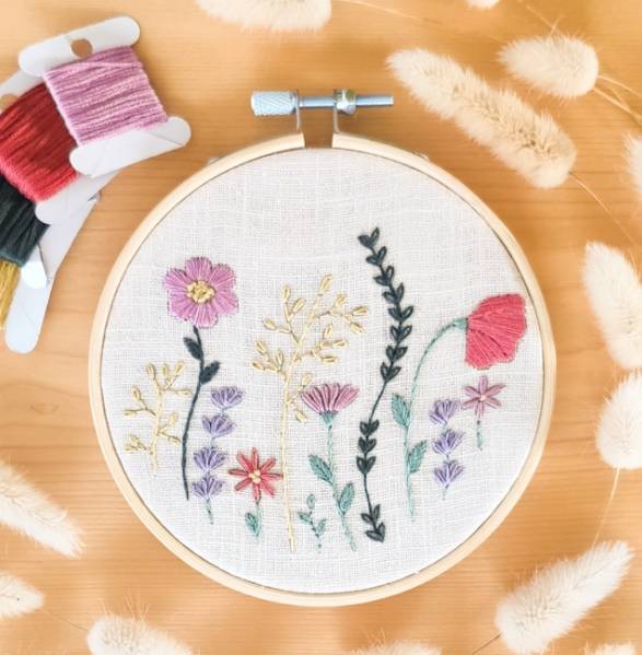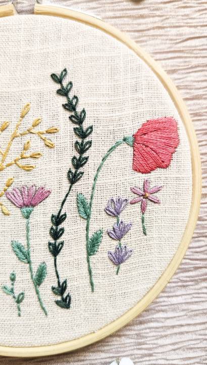 Avec ce kit tu apprendras 7 points en brodant ces jolis fleurs des champs ? (11x9cm)