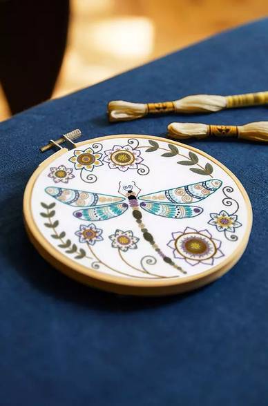 Dans ce dessin, Christel Gouze, Un Chat dans l’Aiguille, a décoré les ailes de la libellule et les pétales de fleurs avec une large gamme de points de broderie, y compris des points plus avancés comme le point de roue du cerceau et les roues de boutonnières. Les instructions en couleurs sont incluses et vous trouverez des tutoriels pour tous les points sur notre site web et sur le site « Un chat dans l’aiguille ». Christel a utilisé du fil Mouliné Étoile brillant et du fil métallisé Light Effects pour donner une impression de luxe. Le kit contient tous les fils, toile et accessoires de haute qualité dont vous avez besoin pour recréer le motif détaillé de Christel.
