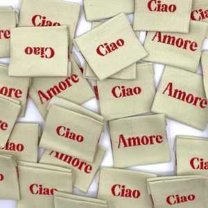 Etiquette tissée repliée Ciao Amore