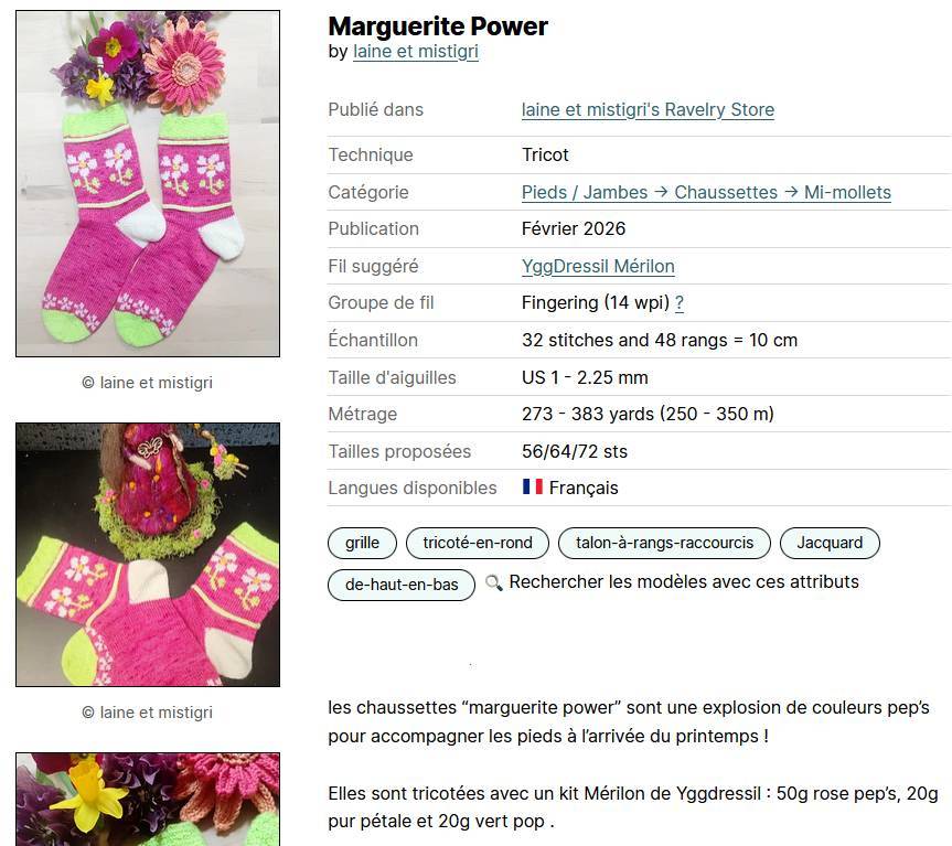 Explications Laine et Mistigri kit chaussettes Marguerite Power
