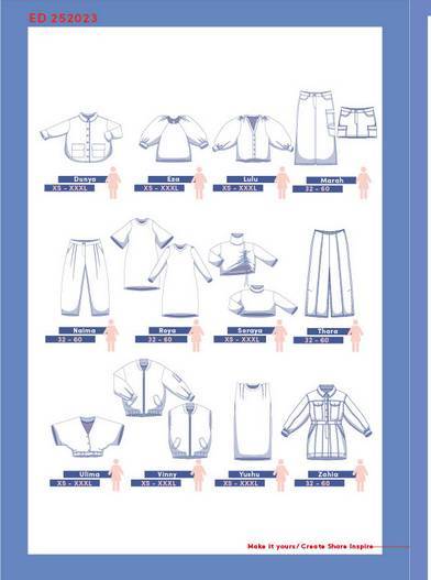 Avec l’édition 25, nous accueillons 12 autres motifs, adaptés à un été indien ensoleillé et à une touche automnale. Avec Dunya, une veste courte très tendance, vous allez défier l’automne avec style ! Le bombardier Vinnie vous aidera également pendant la mi-saison. Avec Marah, vous avez une jupe polyvalente, vous optez pour le court lors d’une fin d’été béate ou vous optez pour le long ? A vous de voir ! Vous préférez une robe intemporelle ? Alors vous tomberez sans aucun doute amoureuse de Yushu, classe et confortable à la fois !