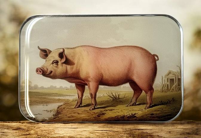 Cette charmante notion en boîte présente une illustration de porc vintage, dodue, fière et pleine de personnalité du vieux monde. Égaux-pièces pratiques et ludiques, on a l’impression qu’il aurait pu vivre une fois sur une étagère de garde-manger, niché parmi les paquets de graines, les cartes de recettes et d’autres curiosités tranquilles.