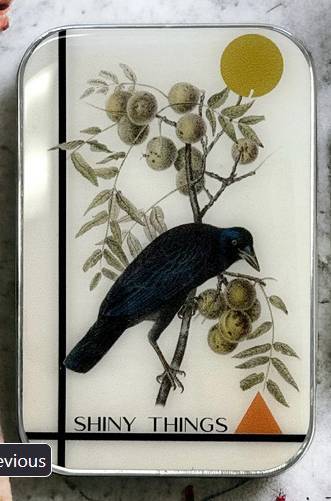 J’ai présenté cette belle image de corbeau vintage dans ma conception brillante de l’étain. Cachez vos marqueurs de points ou bijoux préférés ici!