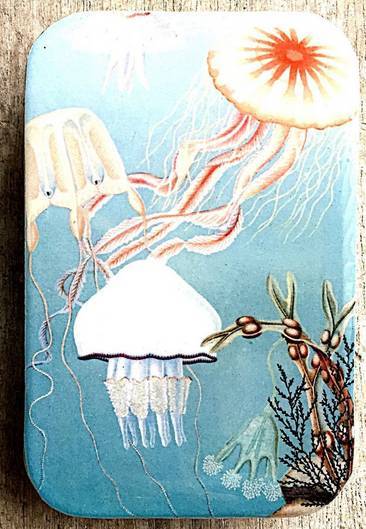 Fantastique plaque de méduse vintage de l’époque victorienne que j’ai (numériquement) retouchée, imprimée et fabriquée sur cette boîte de curseur enduite de résine brillante.