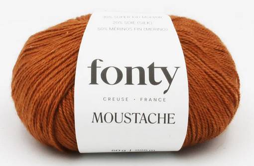 MOUSTACHE peut être tricoté seul ou doublé. Lorsqu’il est tricoté seul, MOUSTACHE est recommandé pour des aiguilles # 3.5 à 4.