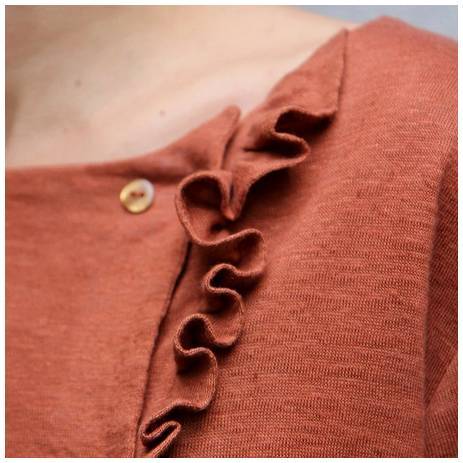 Elena est un patron déclinable à volonté : une robe avec 2 longueurs et des poches, un top, avec ou sans volant ou même un demi-volant, un empiècement aux manches.