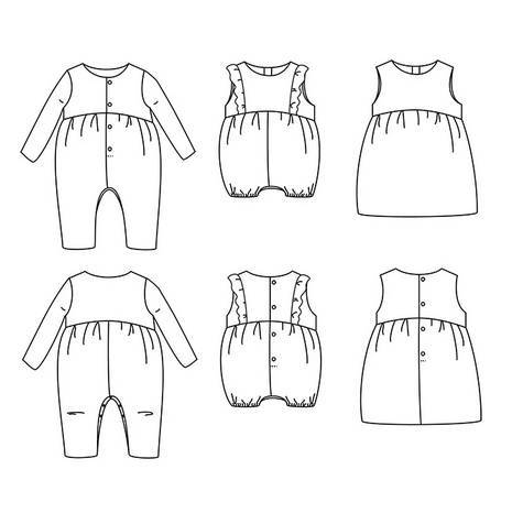 Ce que vous apprendrez avec ce patron : doubler le buste, assembler une patte de boutonnage partielle, assembler une patte de boutonnage entre-jambe, assembler des volants.