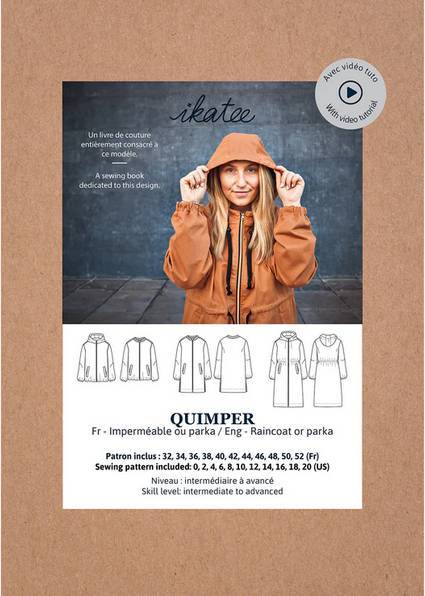 Quimper est un patron de coupe-vent, imperméable ou parka pour femme. Ce modèle est disponible en 3 longueurs : courte, mi-longue et longue. Quimper dispose de 2 options de col : capuche doublée ou col en bord-côte. Le devant est zippé ainsi que les côtés en option. Le modèle est proposé avec ou sans doublure.