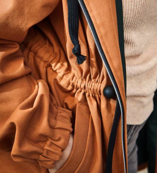 - en option : 1 cordon pour la capuche et 1 pour la coulisse.
